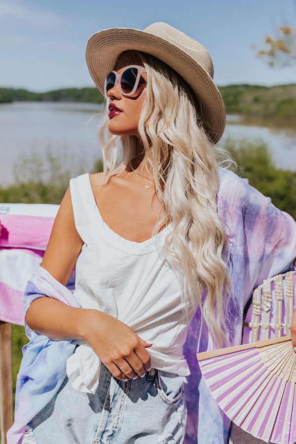 Sweeten up your wardrobe with this adorable 'Snow Cone Summer' hat featuring lightweight woven material, a 3-inch brim, and a pink tie dye accent band!
