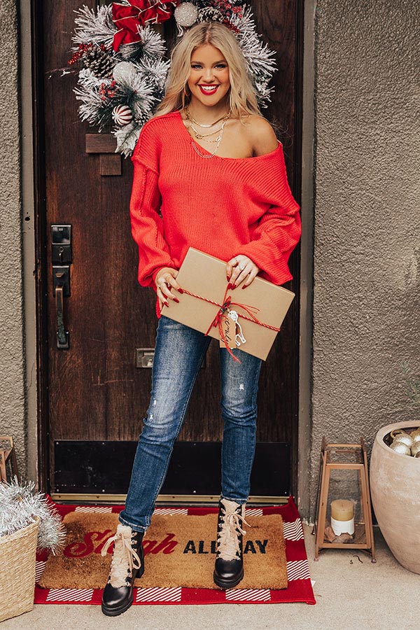 Snow Day in LA Knit Sweater in Red