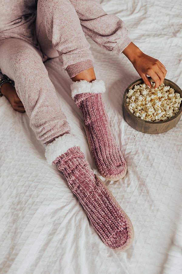 There is no better way to snuggle up on a snow day that with these adorable heathered wine colored slippers featuring ultra soft lightweight chenille material with ribbed texturing, rounded closed toes, white faux fur lining, structured soles, and a relaxed above the ankle silhouette!