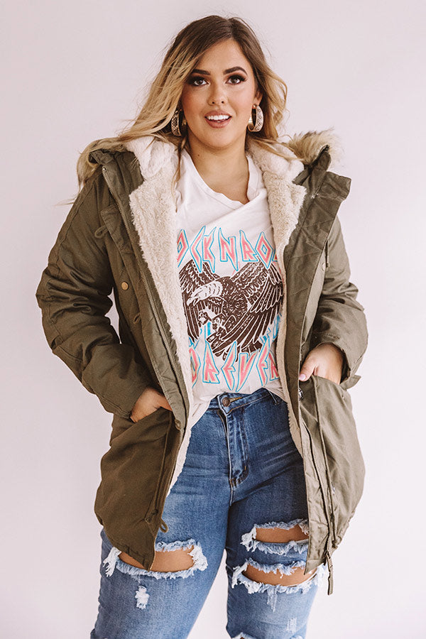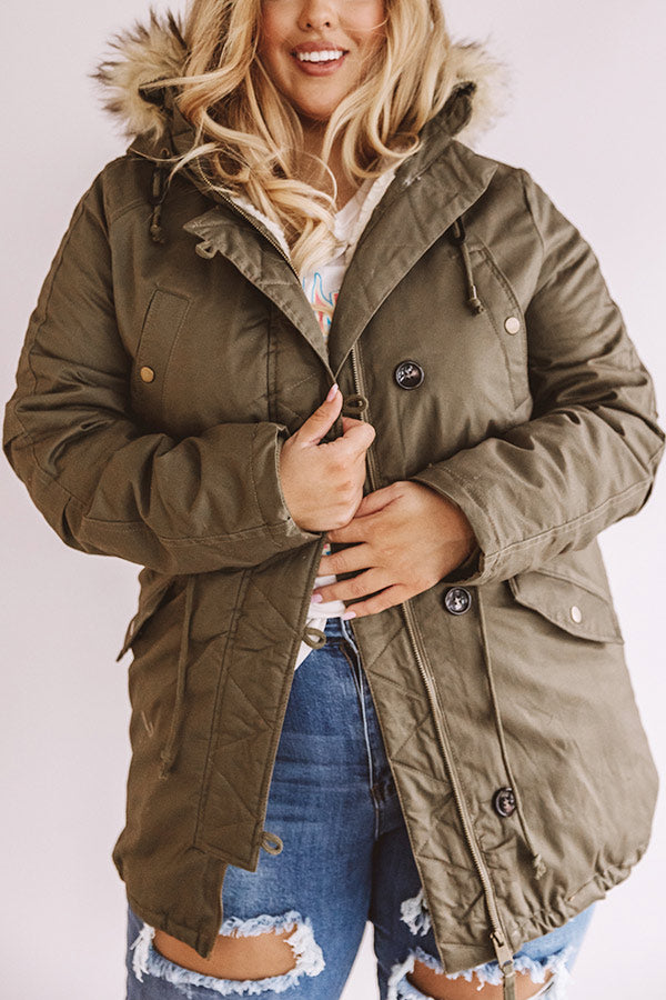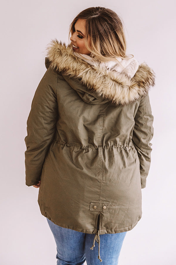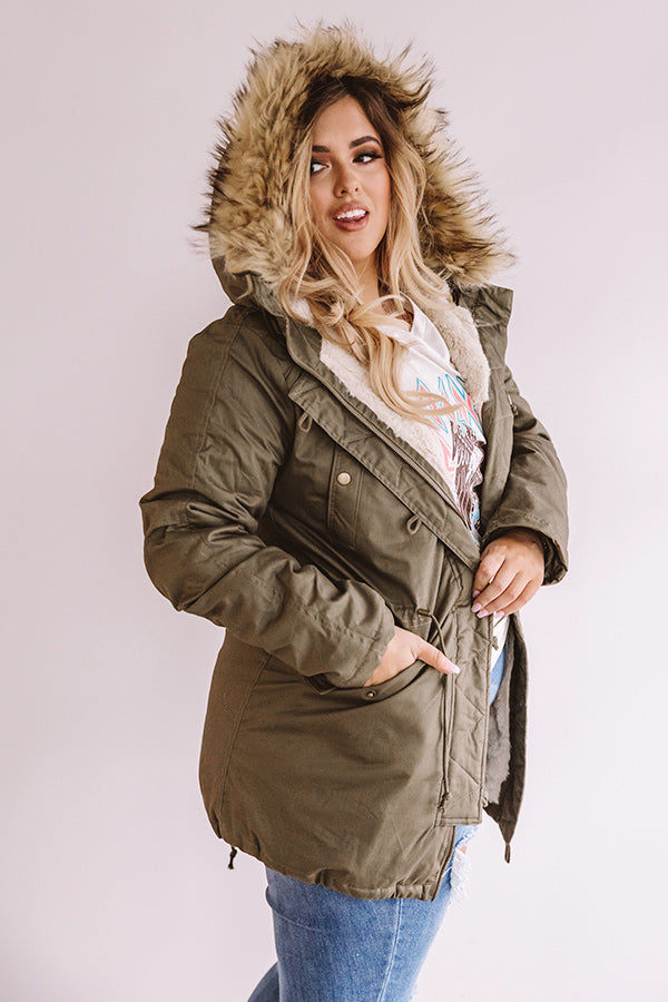 Snow Day Snuggles Parka Jacket In Olive Curves