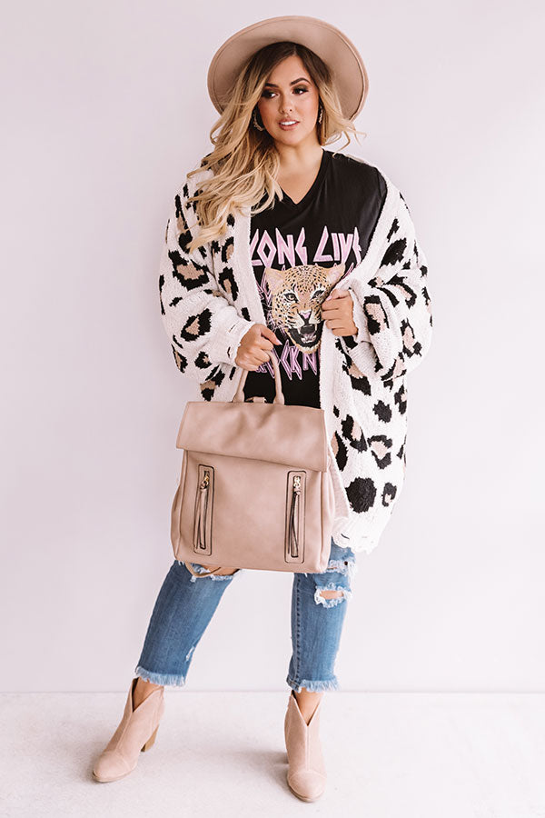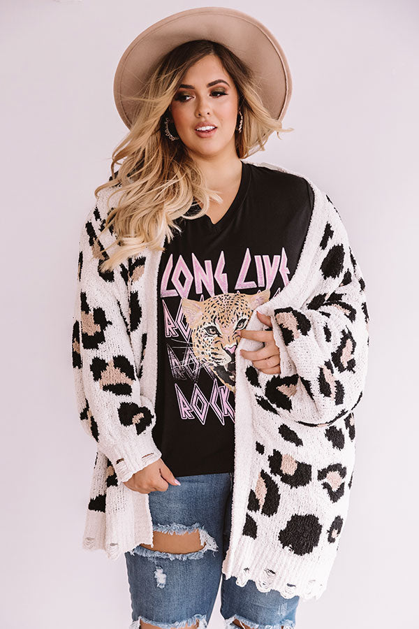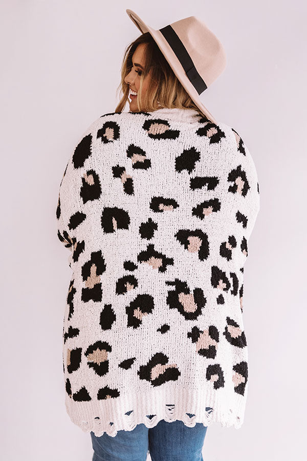 Snow In Central Park Knit Leopard Cardigan In Ivory Curves