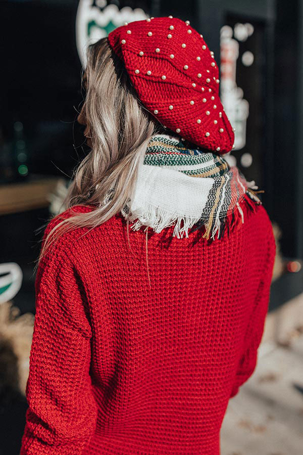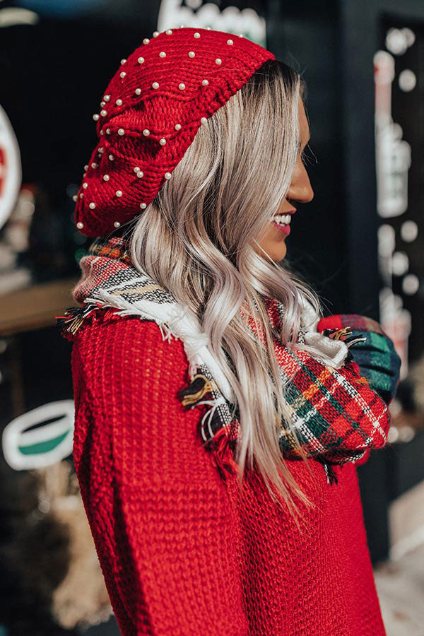 Top off your OOTD in style while also staying warm and protected from the chilly "snow in NYC" with this adorable red beret featuring soft lightweight tight knit material with beaded pearl accents and a relaxed silhouette!
