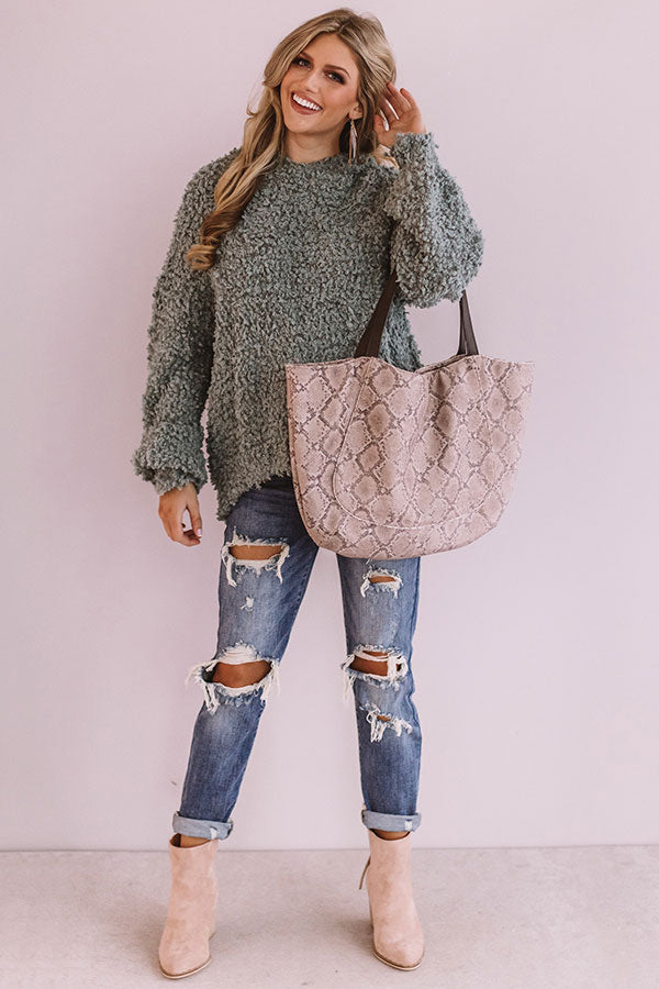 When packing for your "snow retreat," don't forget to toss this adorable and warm pear colored hoodie in your suitcase with its soft lightweight popcorn knit material, ribbed trim texturing, long oversized bishop sleeves with fitted cuffs, a hooded back, and relaxed silhouette that falls into a straight hemline! We have styled this piece with some distressed ankle skinnies, a snake print tote, and neutral booties, but you can also wear it with some charcoal flares, "The Seraphina Faux Leather Wedge in Grey," and our "All Caught Up Headband in Grey!" Measurements