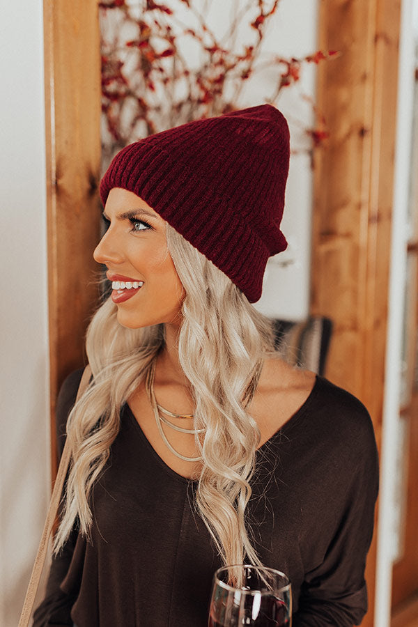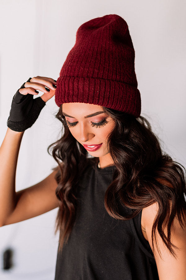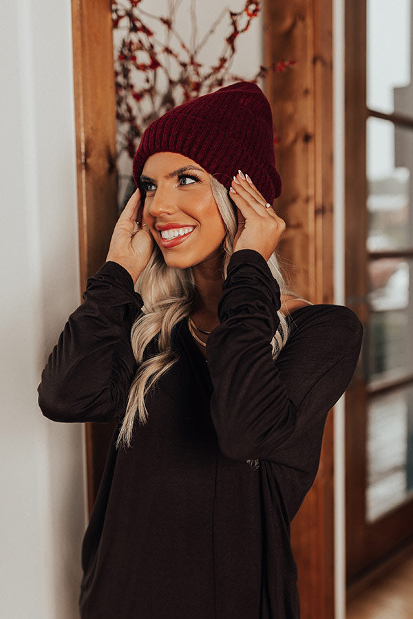 Complete your look with our trendy maroon 'Snow Ski' beanie featuring soft lightweight and stretchy tight knit material, ultra soft fleece lining, and a rolled silhouette!