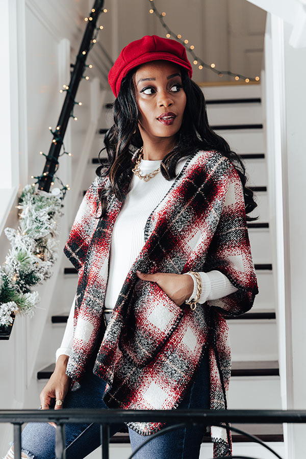 Snowmass Plaid Poncho In Red