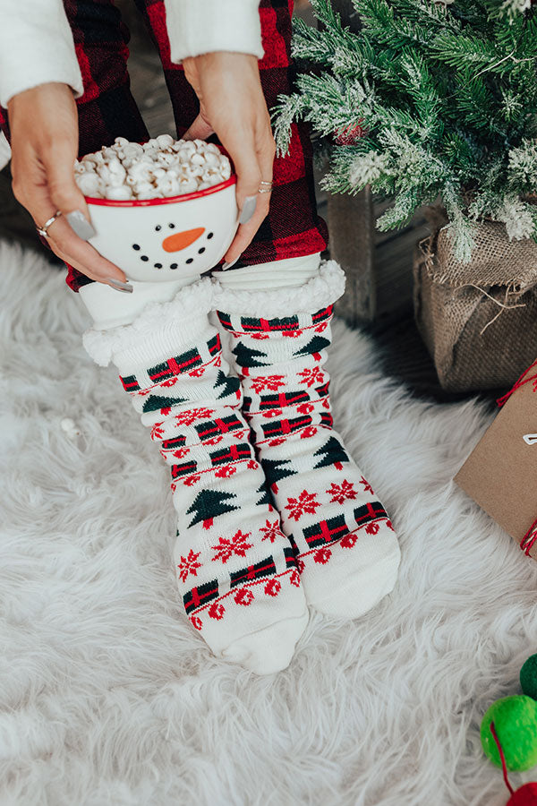 You are guaranteed to have a merry snowmass when you wear these adorable slipper socks featuring an adorable Christmas print and ultra soft sherpa lining!