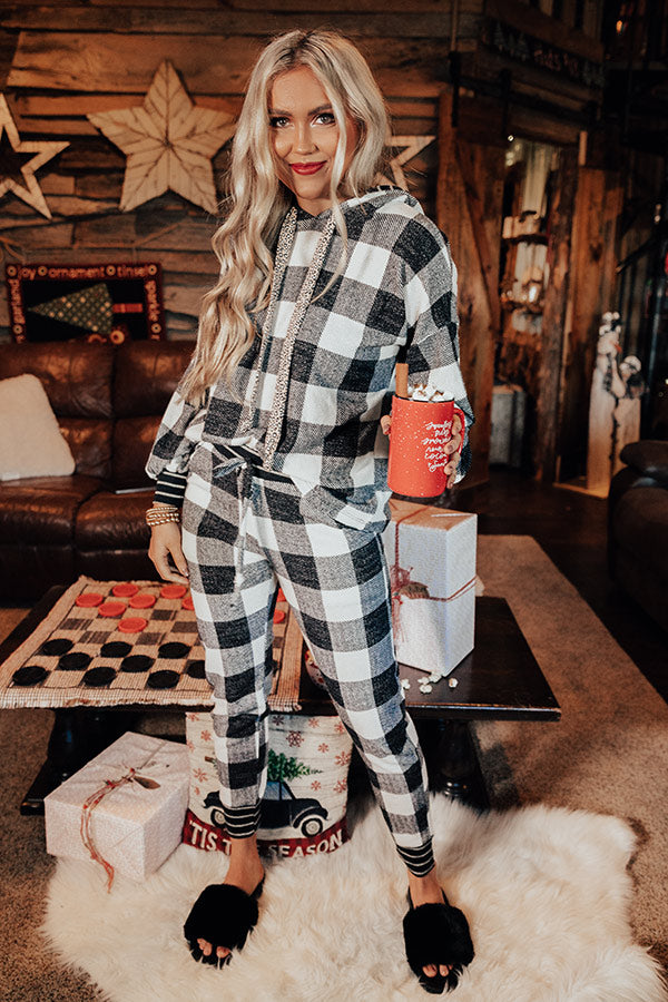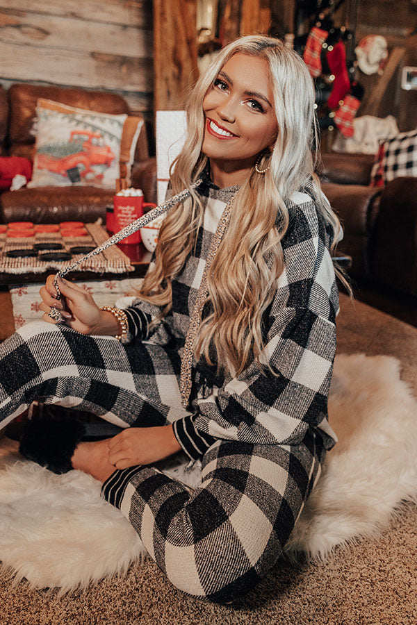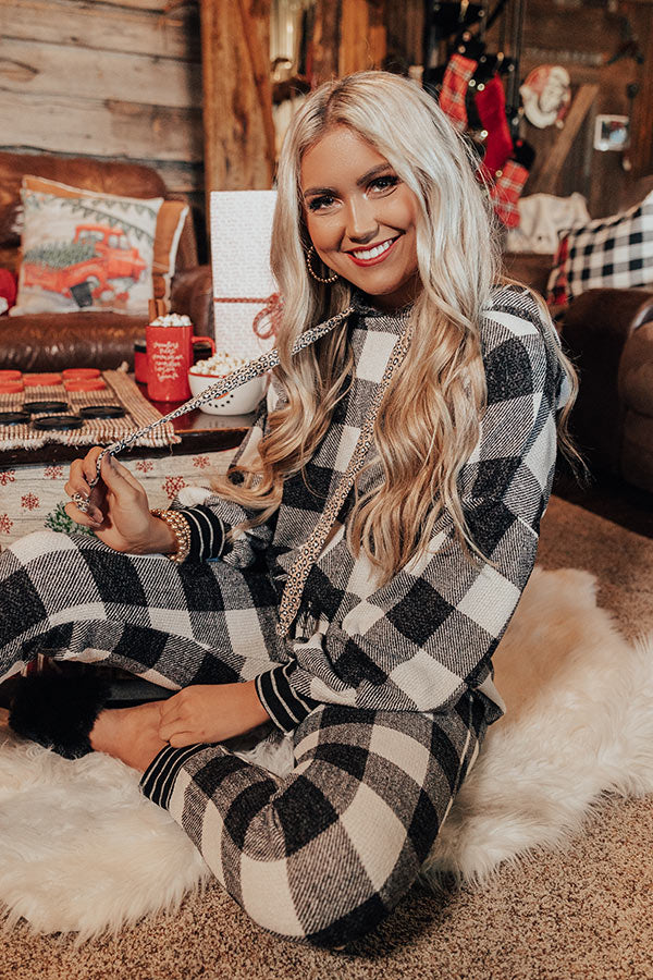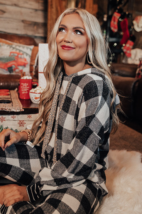 Snowy Saturday Buffalo Check Hoodie in White