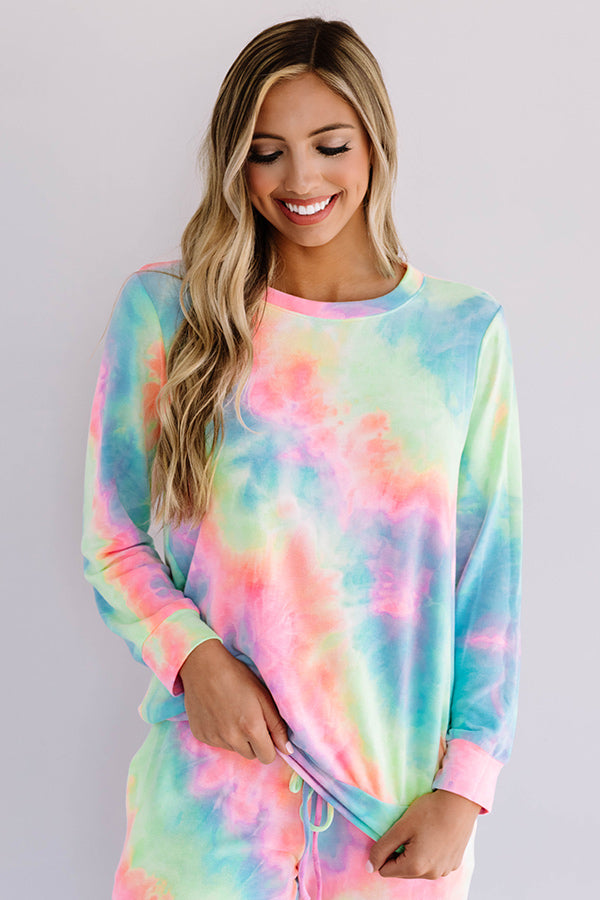 Snuggle Down Tie Dye Sweatshirt In Pink