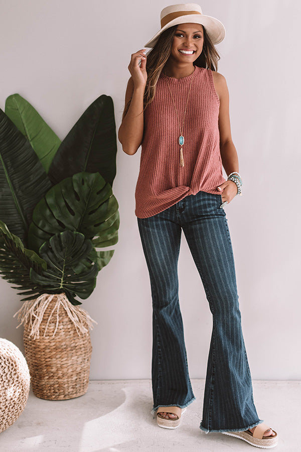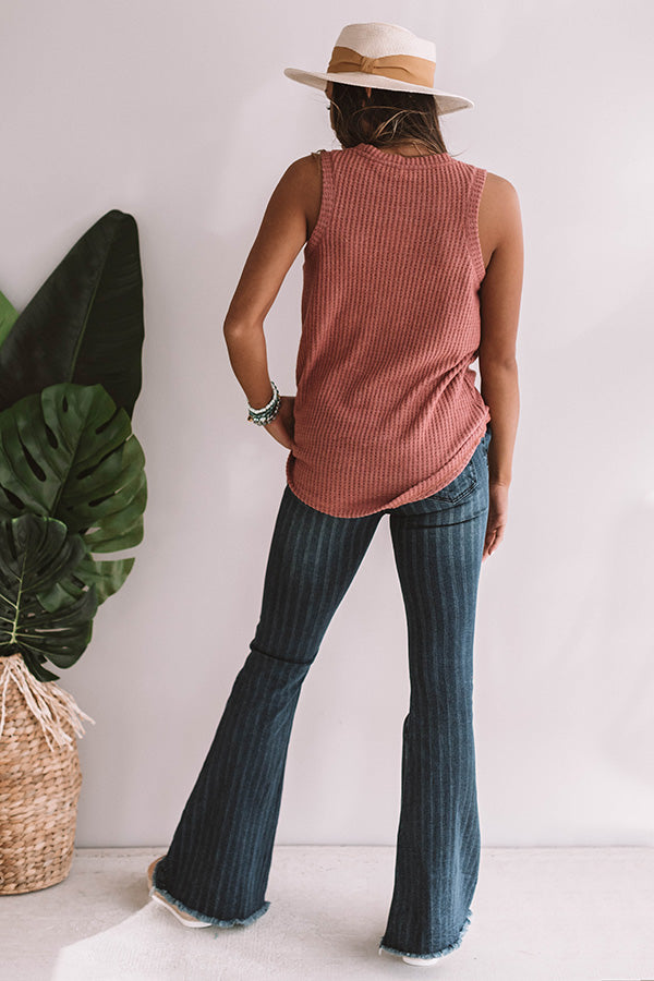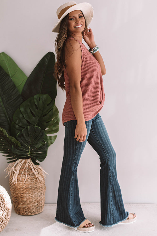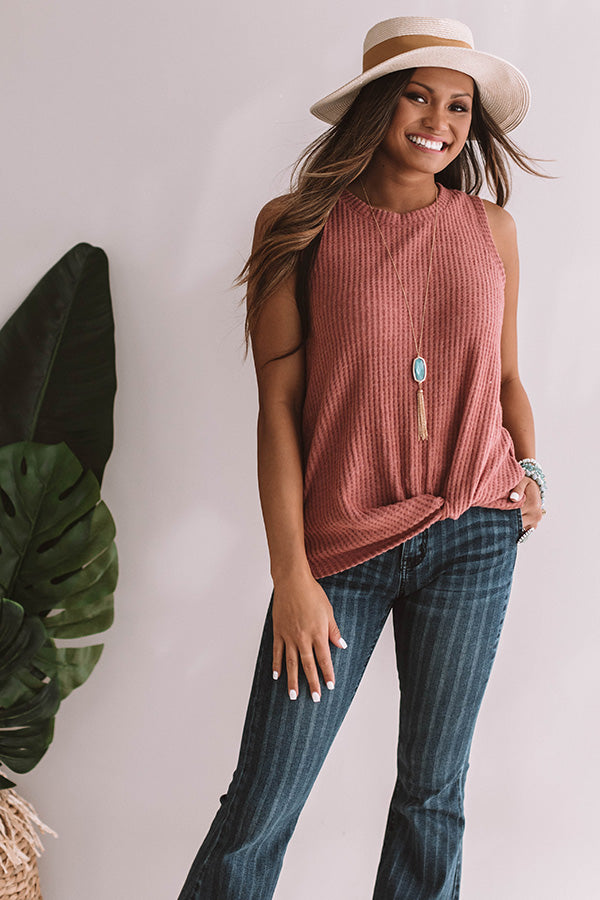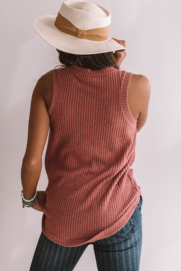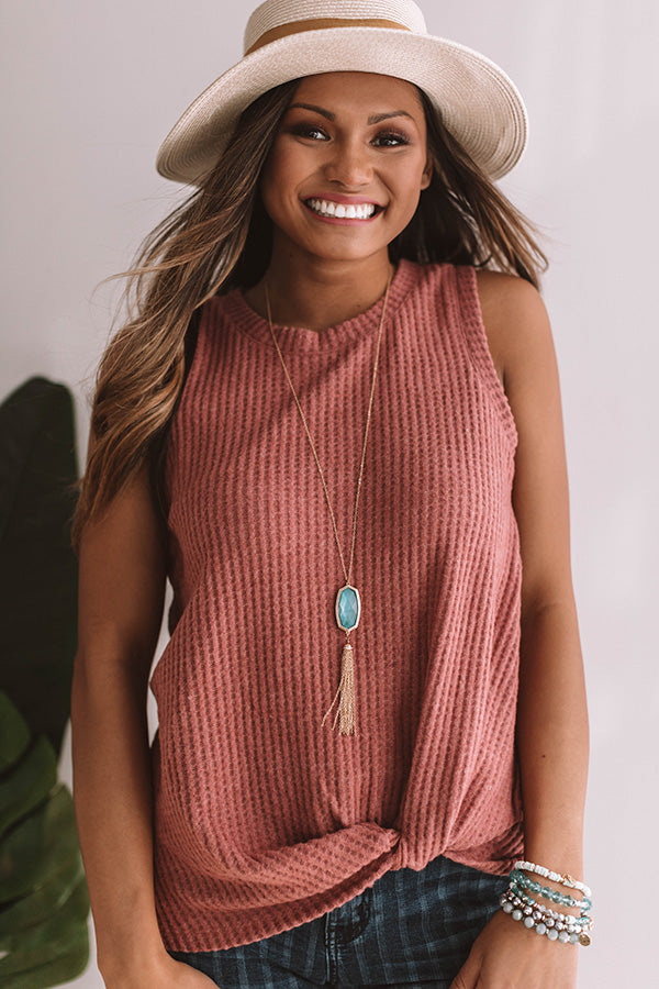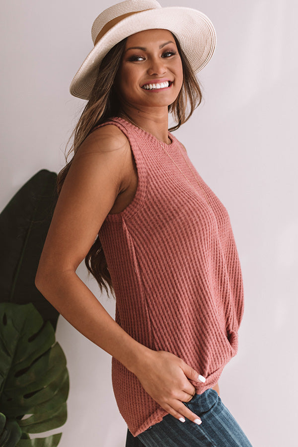 This perfectly comfortable everyday top is shaped from soft waffle knit fabric, featuring a sleeveless and relaxed fit silhouette with trendy twist-front detail.