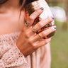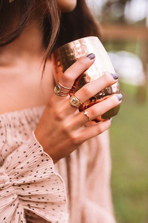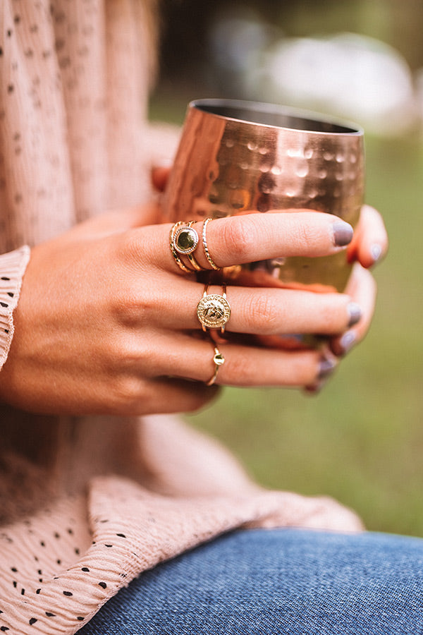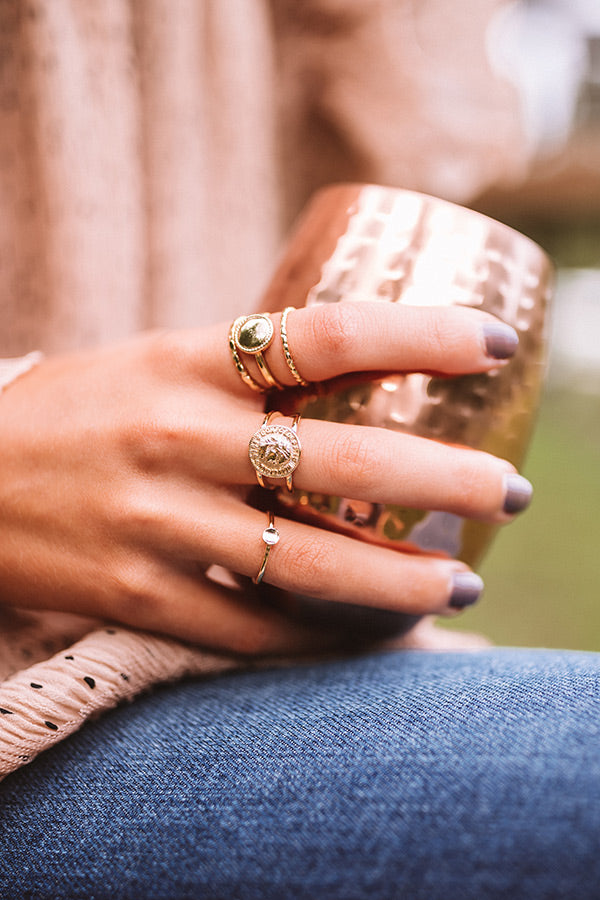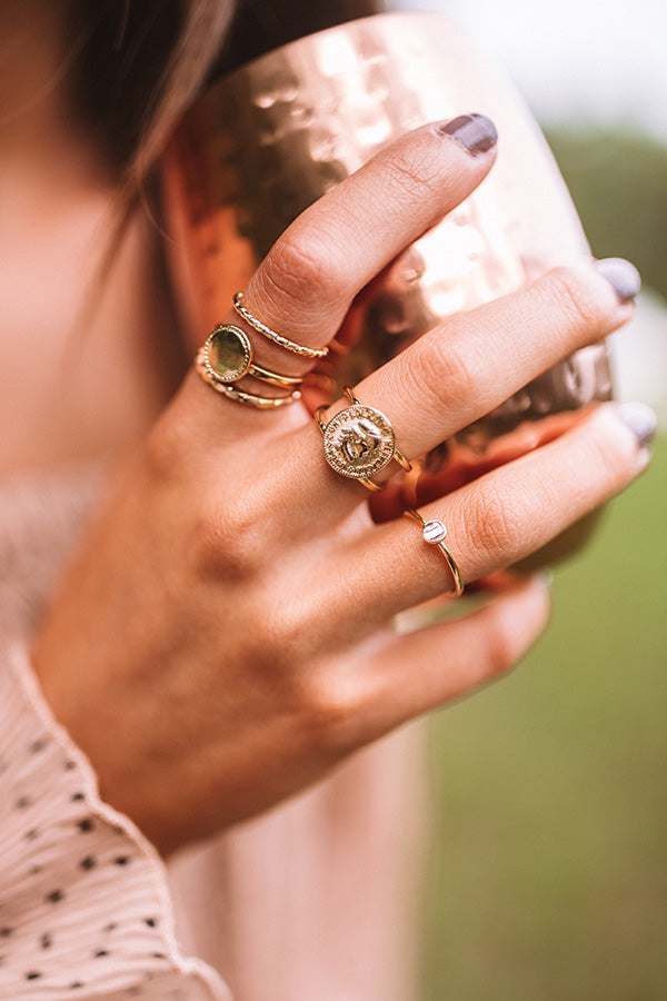 Adding this stunning gold five piece ring set to your cart is "so worth it" with its dainty thin bands, stamped texturing, and circle detailing!