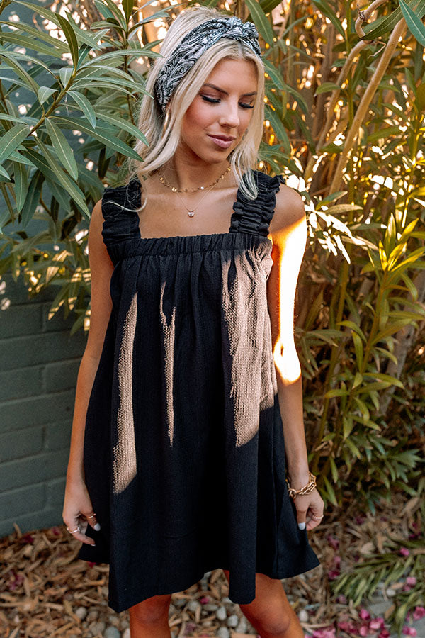 Soak up the sun in effortless style with this darling little black dress featuring lightweight material, wide ruffled shoulder straps that tie across the back, a straight neckline, and relaxed silhouette that falls into a straight mid-thigh length hemline!