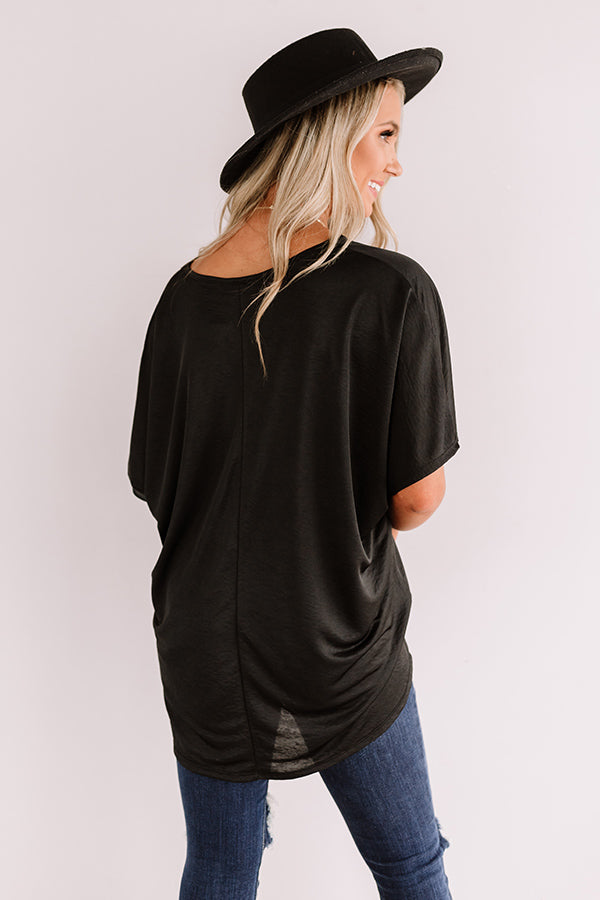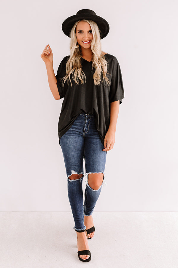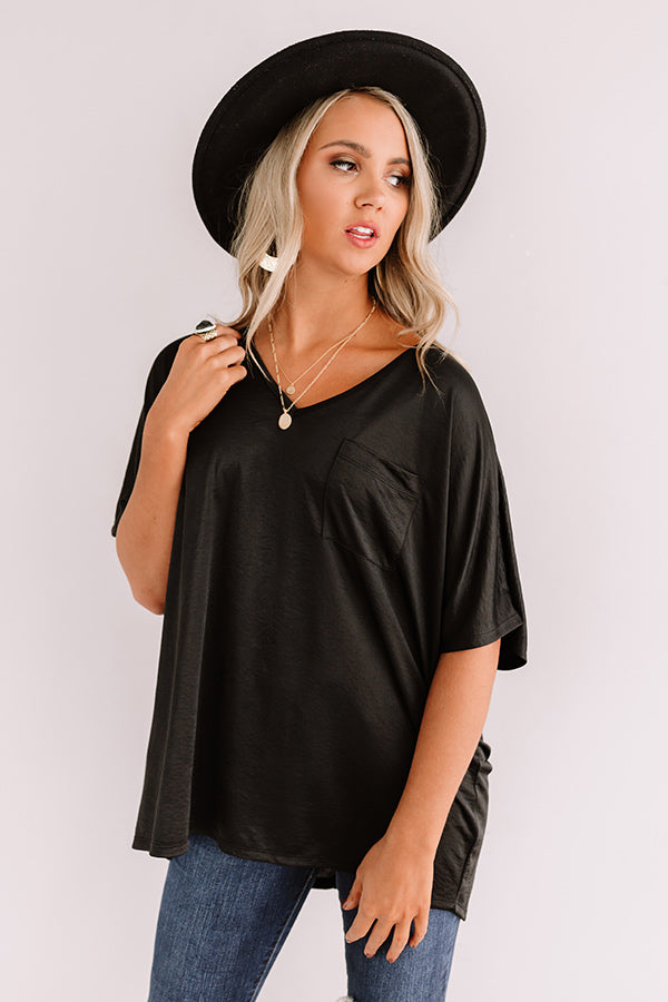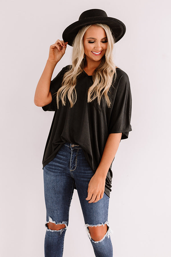 Stay casual but cute in our black "SoCal Luxe Shift Top" featuring soft lightweight material, a v-cut neckline, short loose sleeves, a single accent chest pocket, and an ultra relaxed silhouette that falls into a rounded hemline! Measurements