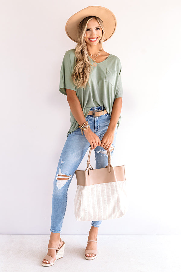 Stay casual but cute in our pear colored "SoCal Luxe Shift Top" featuring soft lightweight material, a v-cut neckline, short loose sleeves, a single accent chest pocket, and an ultra relaxed silhouette that falls into a rounded hemline! This upscale basic can be styled a variety of ways, like with some distressed ankle skinnies, a matching statement belt and faux suede hat, and a neutral wedge and striped tote, but you can also wear it with some frayed white shorts and "The Lula Heel in Snake Print!" Measurements