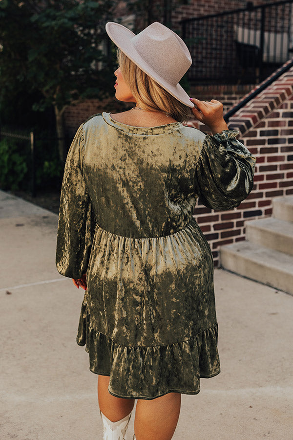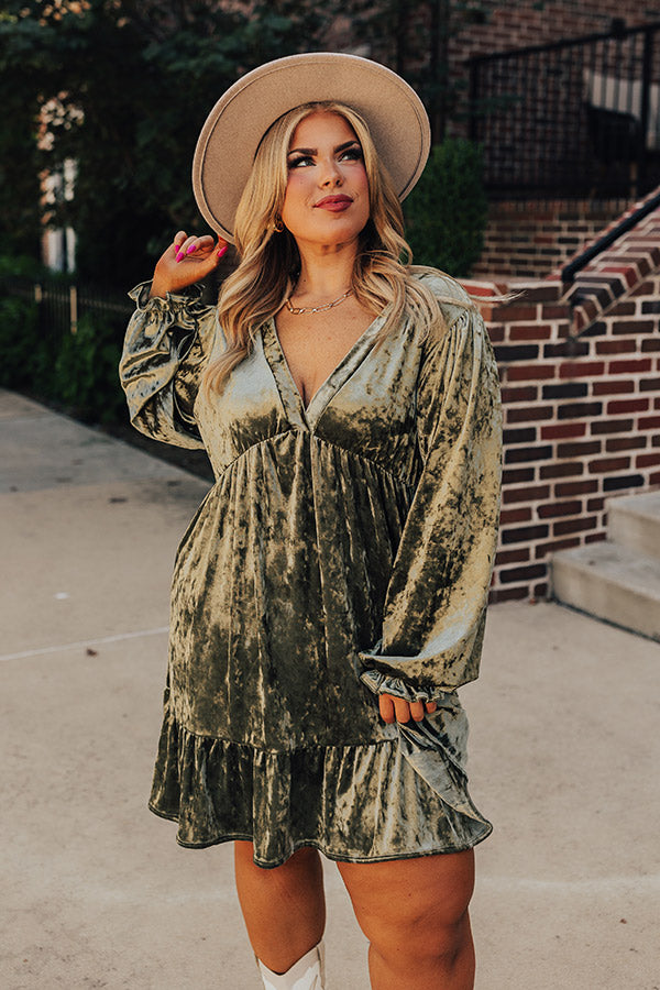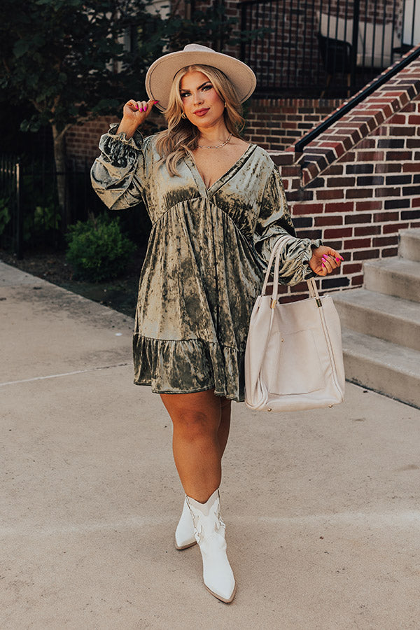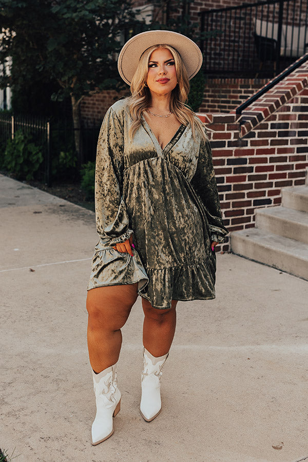 Social And Chic Velvet Babydoll Dress In Army Green Curves