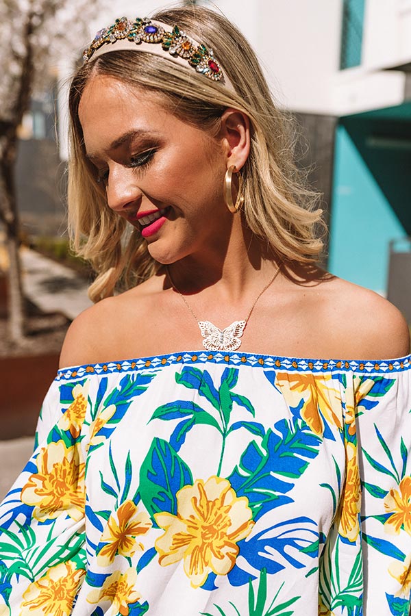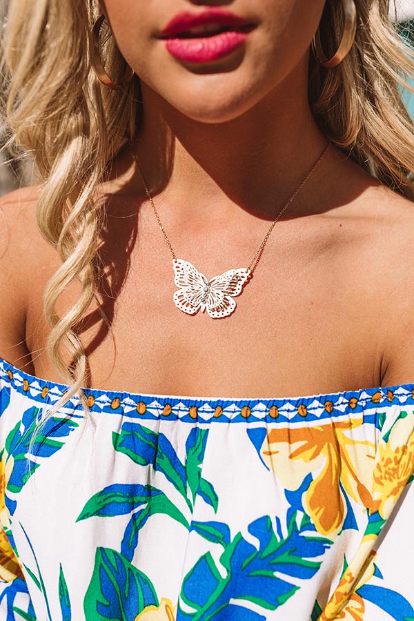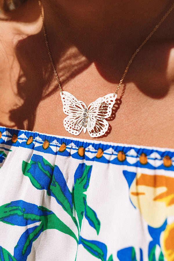 Spread your wings in our dainty "Social Butterfly Necklace" featuring a dainty gold chain with a large white butterfly charm!