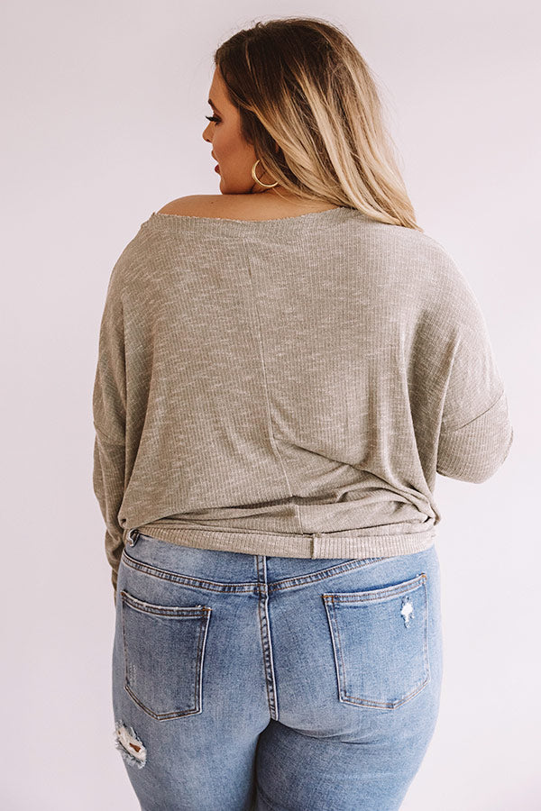 Plus Size - You won't be able to wait for this pear colored top to make its "social debut" before buying it with its lightweight subtly ribbed material, long fitted sleeves, button up bodice with a v-cut neckline, and a relaxed silhouette that falls into a knotted front hemline and a rounded back hem! We have styled this piece with some distressed ankle skinnies and a neutral booties, but you can also wear it with a faux suede skirt, our "Bonding Over Bellinis Faux Leather Tote in Sage," a faux suede hat, and "The Seraphina Faux Leather Wedge in Brown!" Measurements