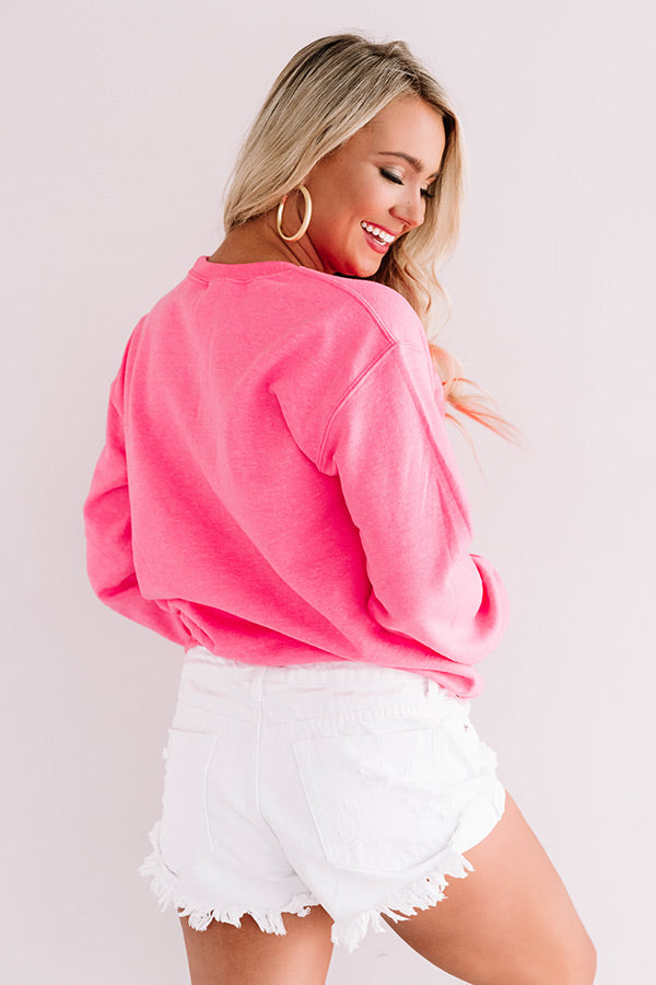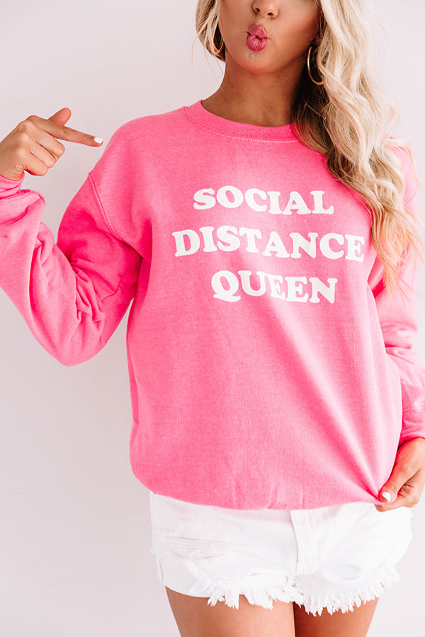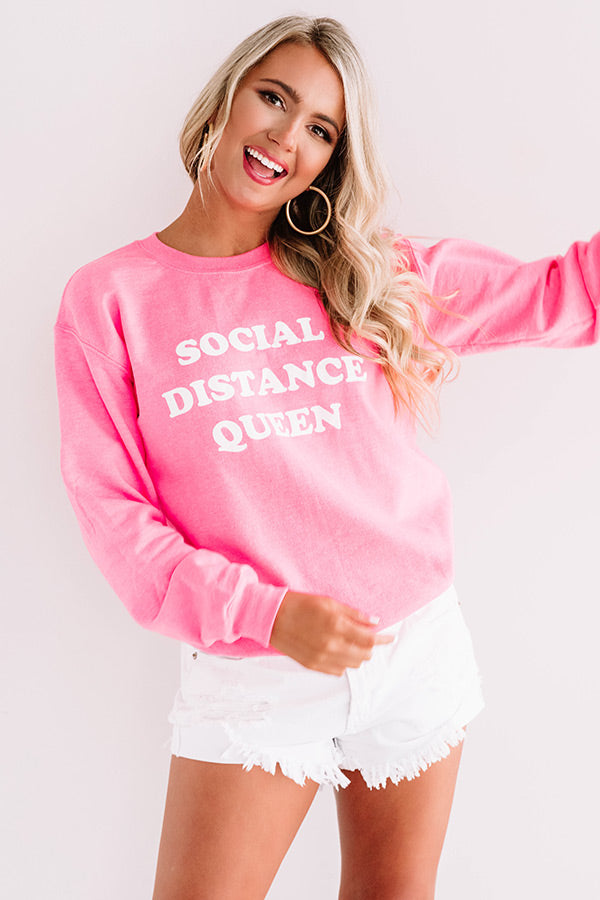 You are sure to look like a "social distance queen" in this neon pink sweatshirt featuring soft lightweight material with white lettering on the front, a high rounded neckline, long loose sleeves, and a relaxed silhouette that falls into a straight hemline! We have styled this comfy cutie with some frayed white shorts and trendy sneakers, but you can also wear it with some light wash flares, "The Lela Espadrille in White," sunnies, and our "Chic Aspirations Transparent Crossbody in White!" Measurements