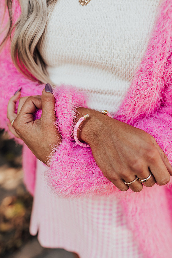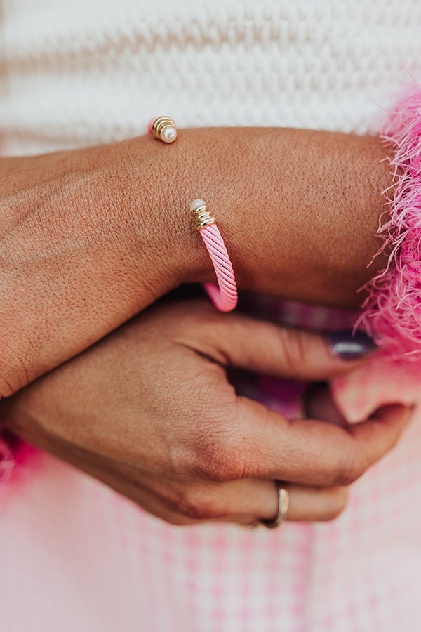Stay stylish in this season's must-have 'Socialite Cuff Bracelet' featuring spiral twisted pink metal with silver and pearl accents.