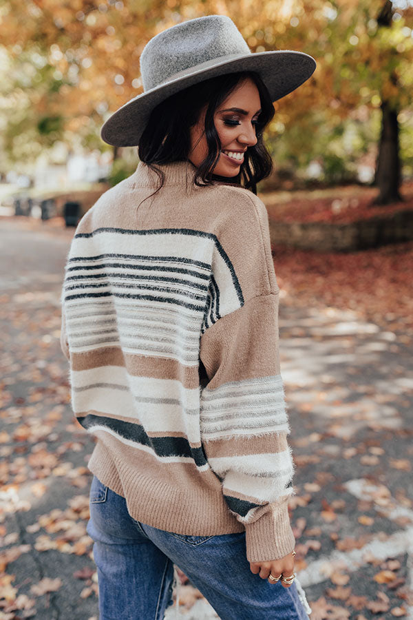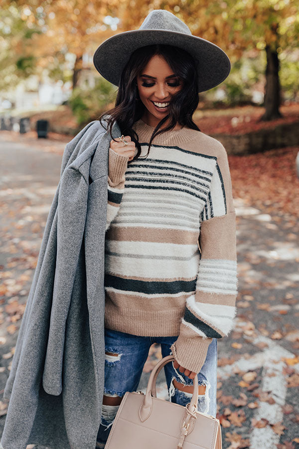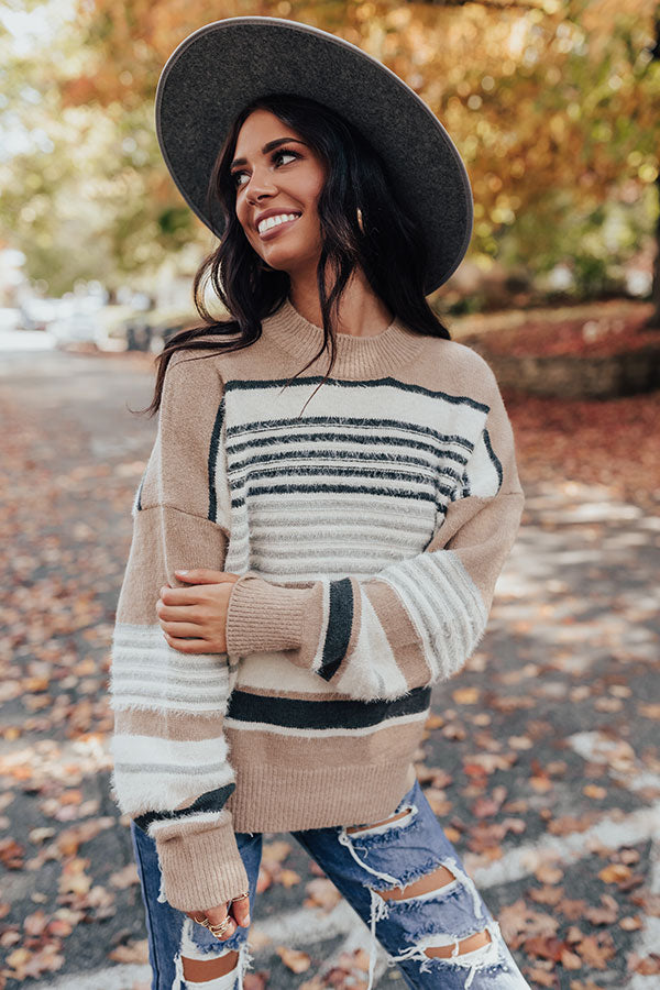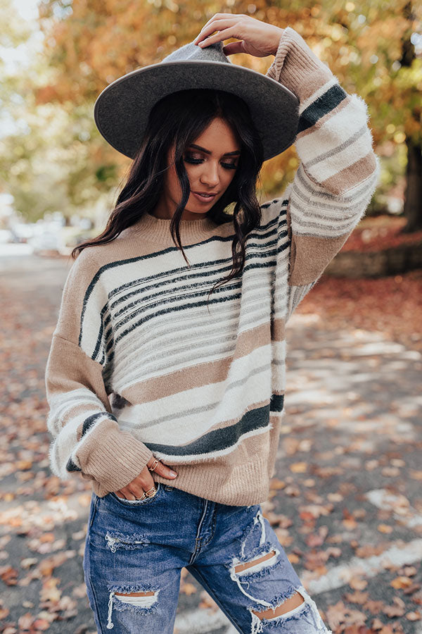 The only thing soft and subtle about this gorgeous sweater is its lightweight tight knit material! Other than that, this cuties neutral, black, and white horizontal stripes, collared neckline, ribbed trim detailing, neckline, long loose sleeves, slouched silhouette, and straight hemline makes it the perfect fall statement piece! Measurements