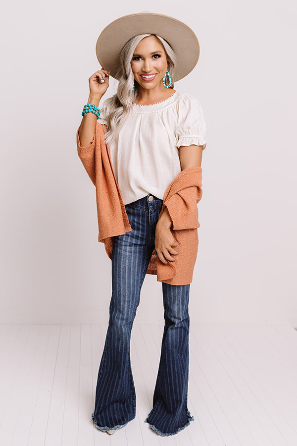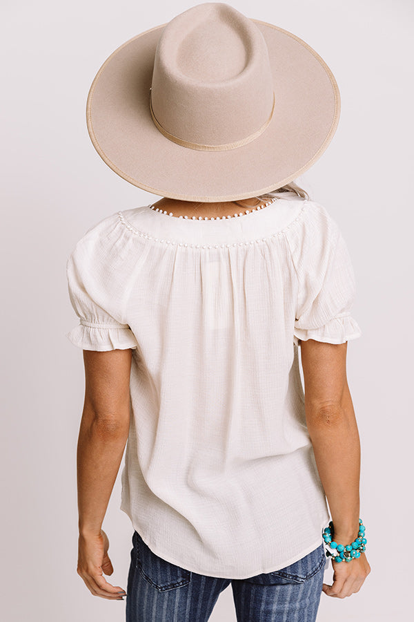 Remain classic in our charming stone colored "Soft Lie Shift Top" featuring lightweight material with linen like texturing, a rounded neckline with subtle beaded trim detailing, oversized pleats across the bodice, short puff sleeves with fitted elastic cuffs and ruffled trim, and a relaxed silhouette that falls into a rounded hemline! Measurements