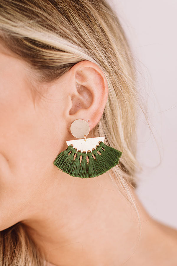 If you are one of those girls who wears jewelry on days ending in "y", then the "Soho Shine" statement earrings are for you with their gold circle studs and dangling half moon with a green tassel fan!
