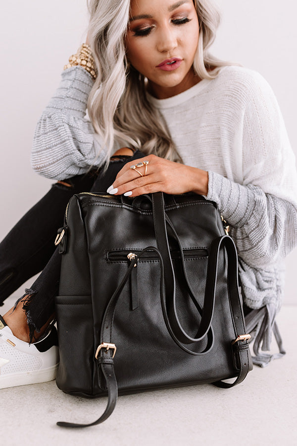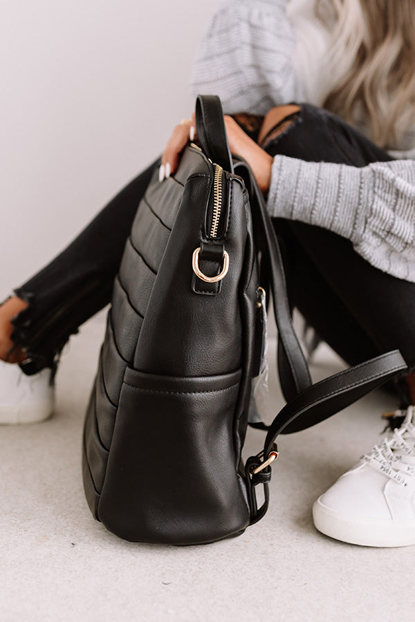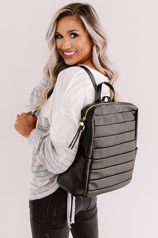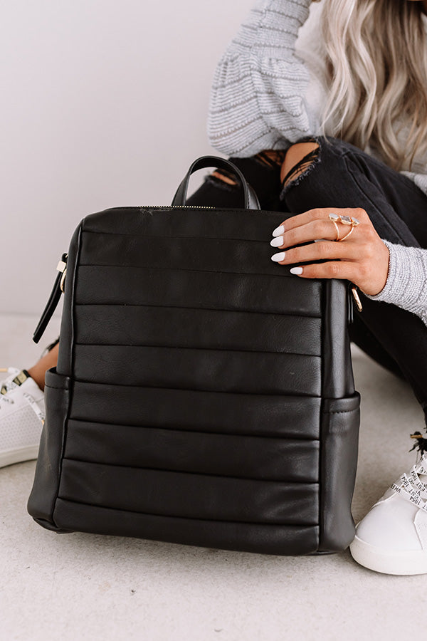 Get back to busy in style with our adorably chic black "Solo In Soho" backpack featuring sleek faux leather material with wide horizontal ribbing, two additional side pockets, adjustable shoulder straps, a lightweight silhouette, and a spacious rectangular pouch with a zip closure!
