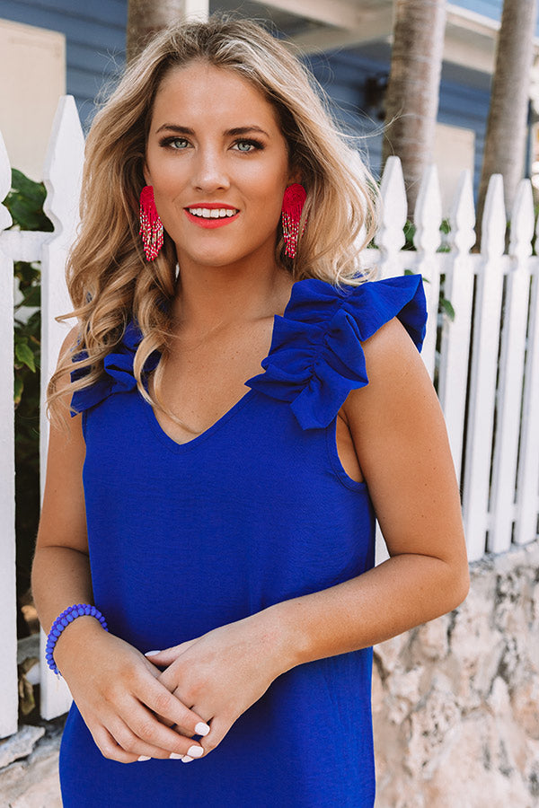 Song And Dance Ruffle Shift Dress in Royal Blue