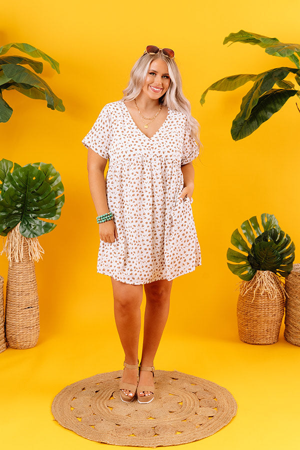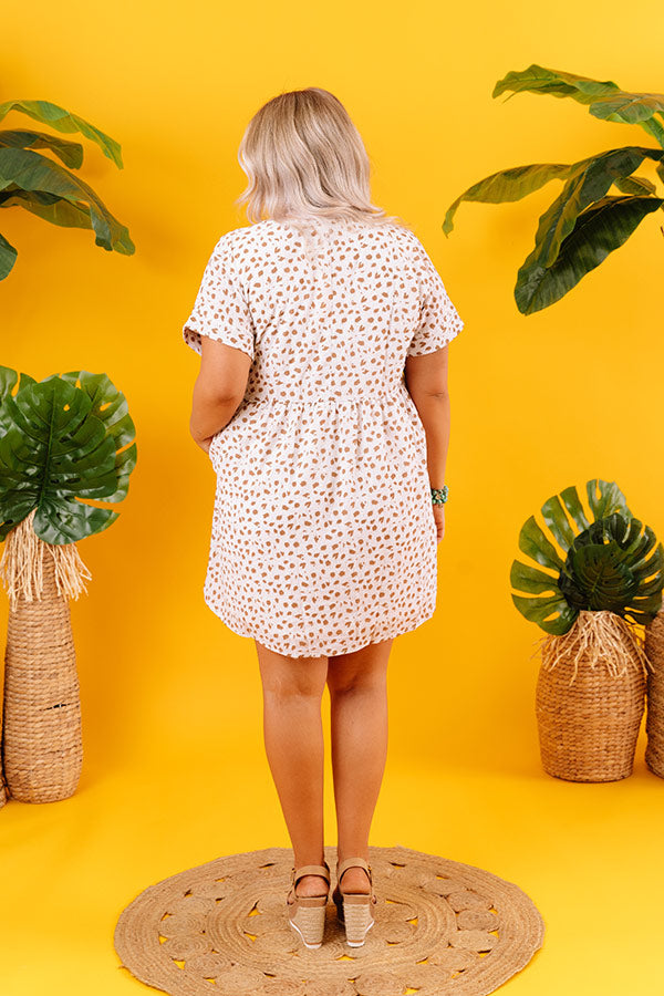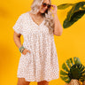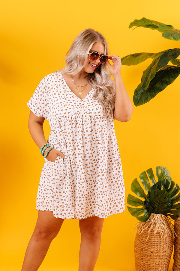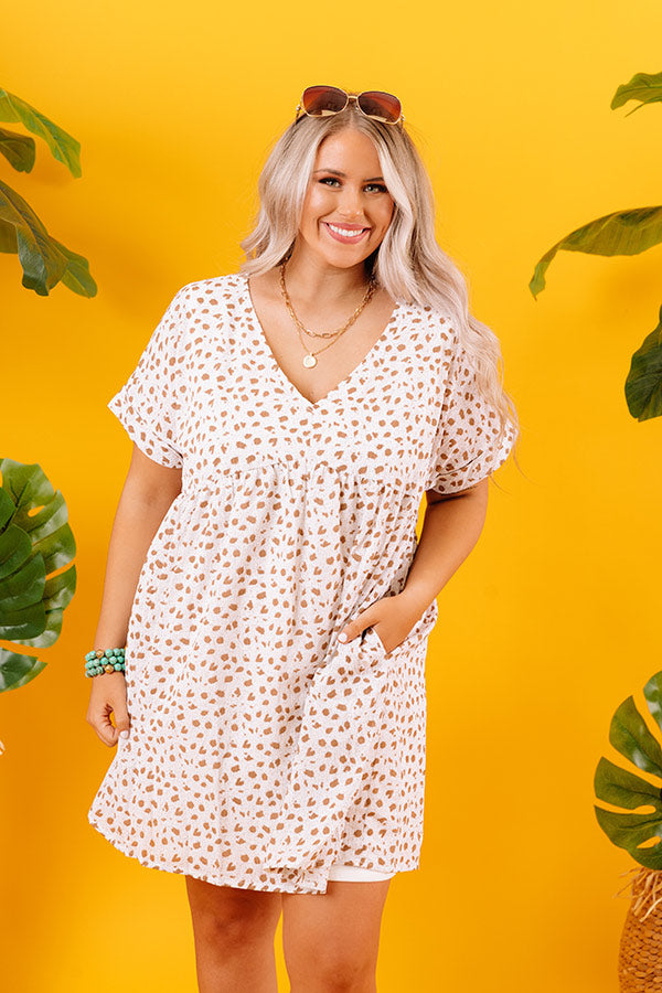 Plus Size - You are sure to swoon over this darling white dress featuring lightweight flowy material patterned with a light brown spotted print, a v-cut neckline, short loose sleeves with rolled cuffs, accent side pockets, and a relaxed babydoll silhouette that falls into a straight mid-thigh length hemline! Measurements