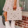 Keep your purse style unique with our ivory hued 'Soul Ties' bag featuring lightweight intricately wooden material with wooden bead detailing, two straight rod handles, and a spacious interior!