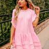 - A flowy tiered silhouette that ends in a mini dress length hemline
