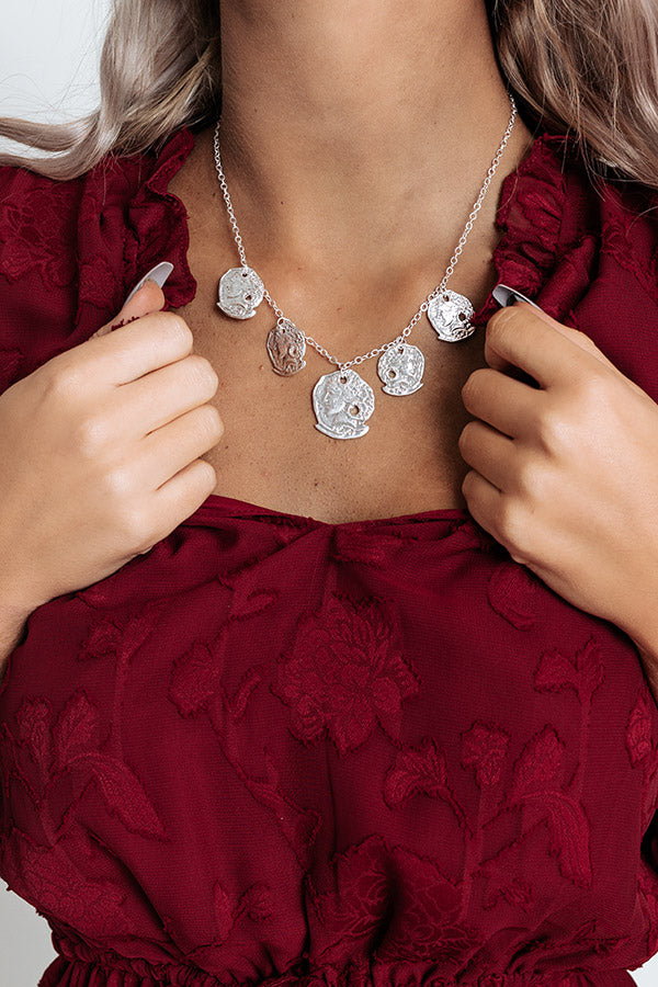 Your look will be right on the money when you accessorize with our luxe photo worthy 'Space For Grace Necklace' featuring a dainty link chain with five silver coin charms!