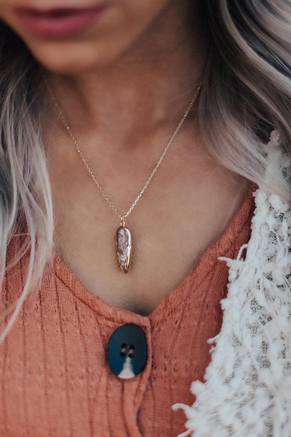 Leave a little "sparkle and shine" wherever you go when you wear this dainty necklace featuring a short gold chain with a semi precious dusty purple stone pendant!