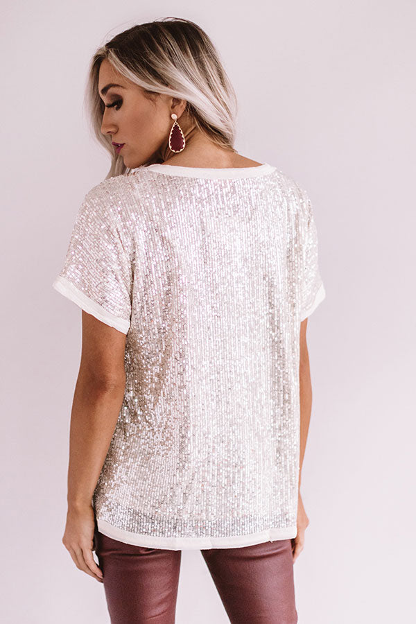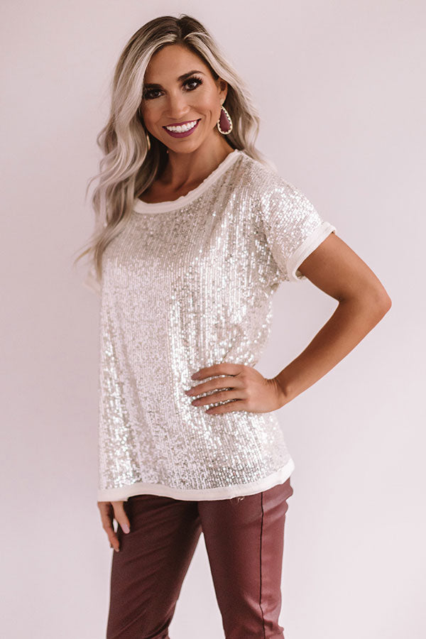 Sparkling Personality Sequin Shift Top in Champagne