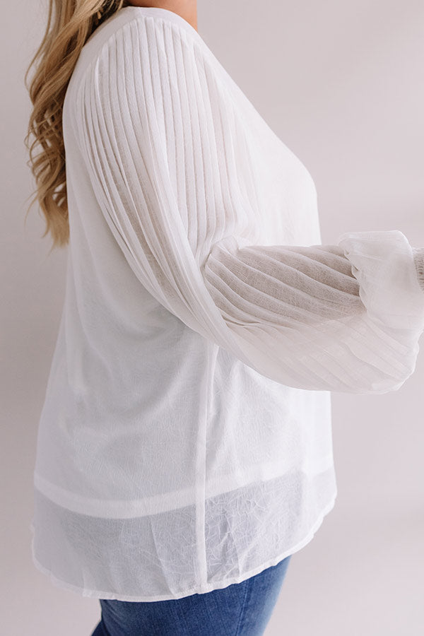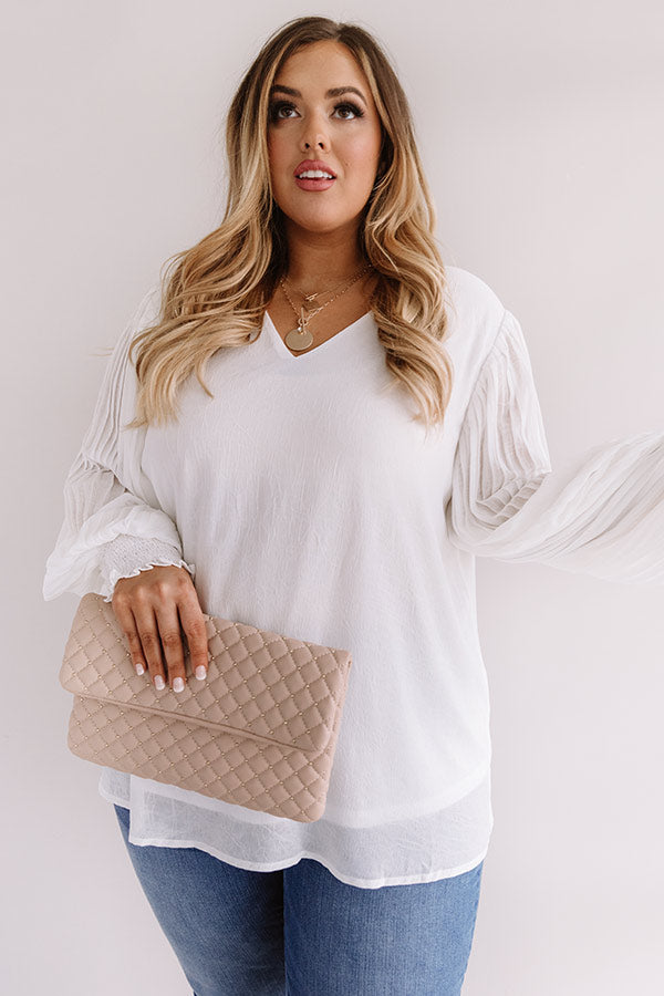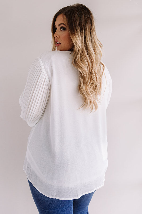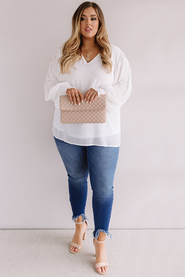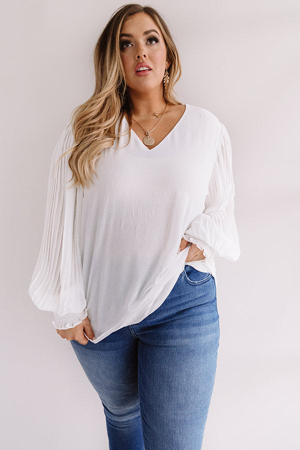 Plus Size - You can never be overdressed in our charming white "Sparks And Kisses Shift Top" featuring ultra lightweight material, a high v-cut neckline, long oversized bishop sleeves with fitted smocked cuffs and pleated detailing, and a relaxed silhouette that falls into an uneven hemline! We have styled this adorable piece withs some distressed ankle skinnies and a neutral heel and crossbody, but you can also wear it front tucked into some frayed jean shorts, "The Lela Espadrille in White," and our "Start It Up Hair Scarf!" Measurements