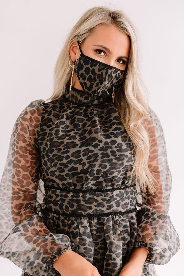 You won't find a better piece to wear for a "special occasion" than this adorable face mask featuring lightweight cloth material patterned with a bold dark brown and black leopard print and two ear straps! Pair with our matching "Special Occasion Leopard Dress" for the ultimate two-piece look!