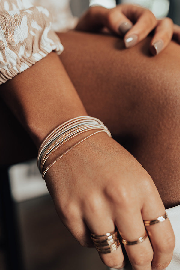 Accessorize in the trendiest of ways with our cute 'Spilling Secret Bracelet Set' featuring ten silver stretchy bands!