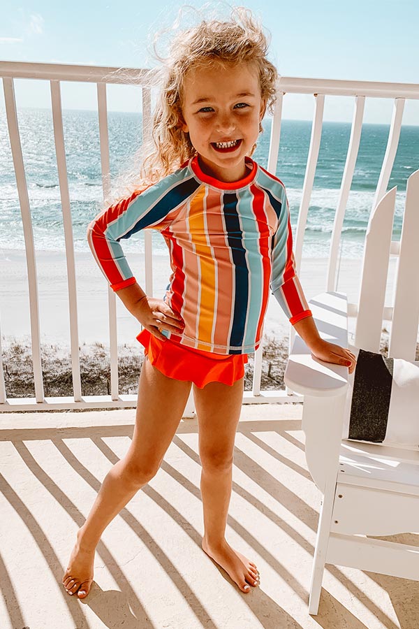 There is no better piece to protect your little girl boss from the "splashes from the sea" than this adorable coral hued bikini bottom featuring stretchy lightweight polyester material and ruffled trim detailing! This cutie styles perfectly with our "Splashes From The Sea Rashguard Swim Top in Coral," sunnies, and a beach towel for the ultimate swim outfit!
