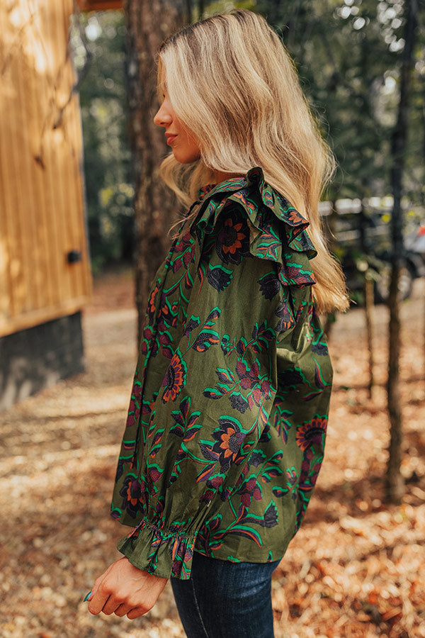- Unlined lightweight material with a black, purple, brown, and green hued botanical print