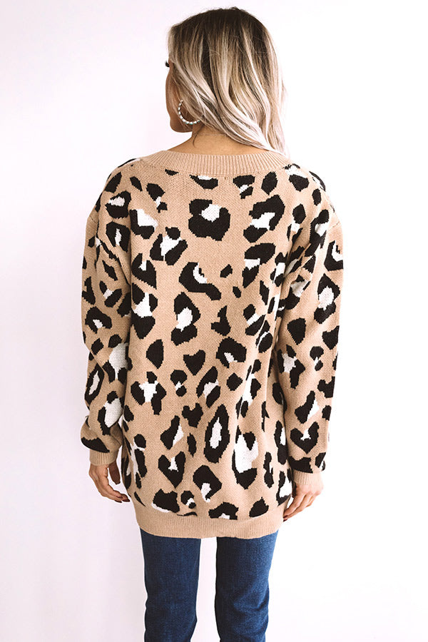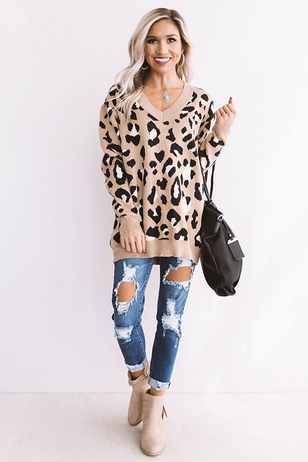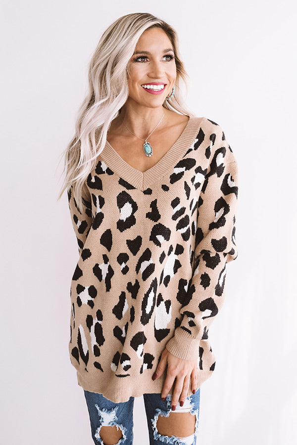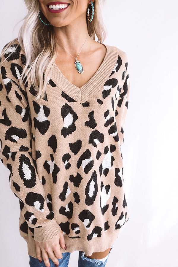 Spotted In Manhattan V-neck Leopard Sweater in Iced Mocha