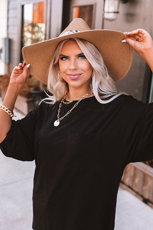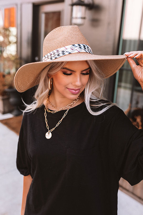 We have no doubt you will want to be spotted topping off your look with this chic tan summer hat featuring lightweight woven material, a wide floppy brim, and a plaid accent band!