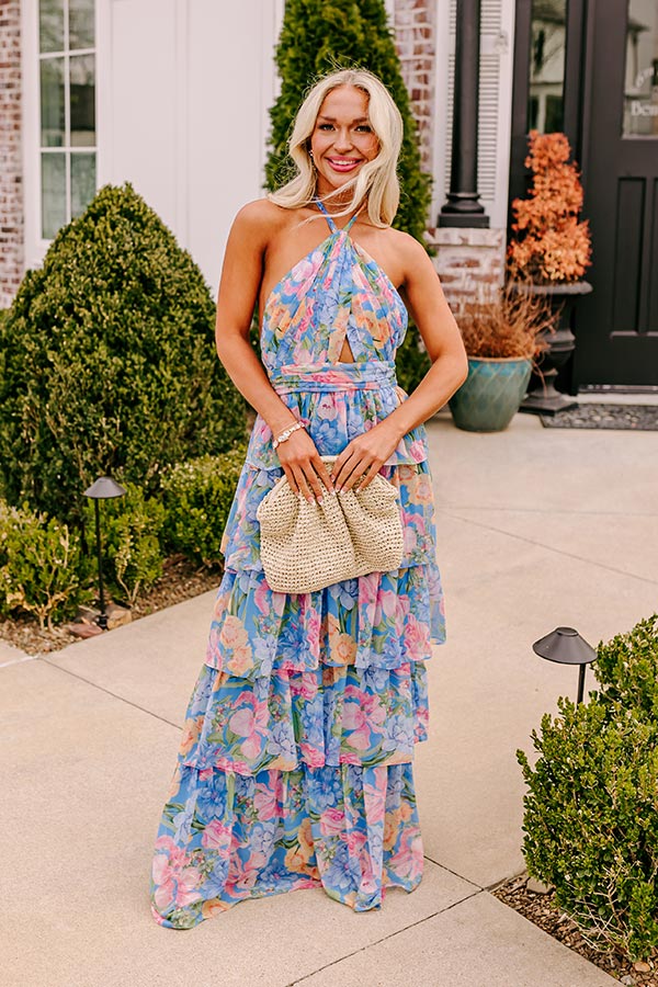 - Step into a world of whimsy with this breezy tiered maxi! Its flirty halter neckline and airy floral chiffon material make it perfect for sunny days when you are going for a dreamy look.