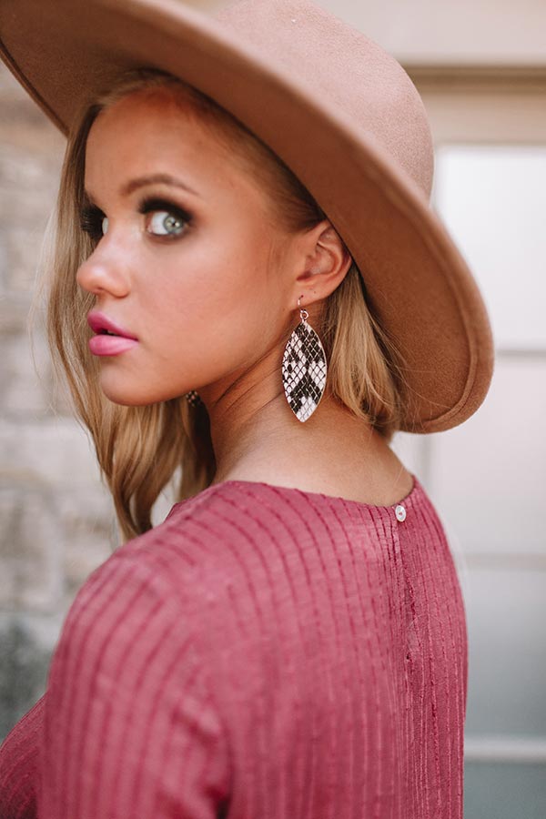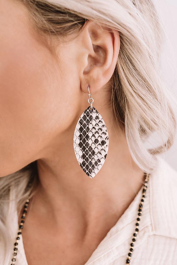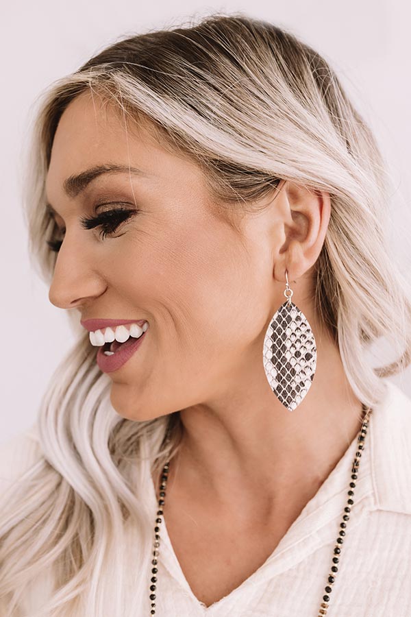 Everyone will want to be a part of your jewelry squad when you wear these ivory earrings featuring textured snake print leaf shaped dangles!