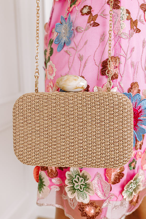 - Embrace luxe villa vibes with this chic woven clutch! It's simple design and trendy stone clasp accent proves that less is more when it comes to elevating a resort ready look.