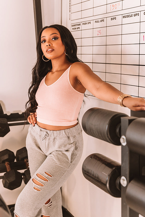You are sure to look like a star when you arrive in this sporty peach colored crop top featuring sleek lightweight four-way stretch material with subtle ribbed texturing, a scooped neckline, skinny sleeveless shoulder straps with a low open square back, and a flattering figure hugging silhouette that ends in a straight cropped hemline!