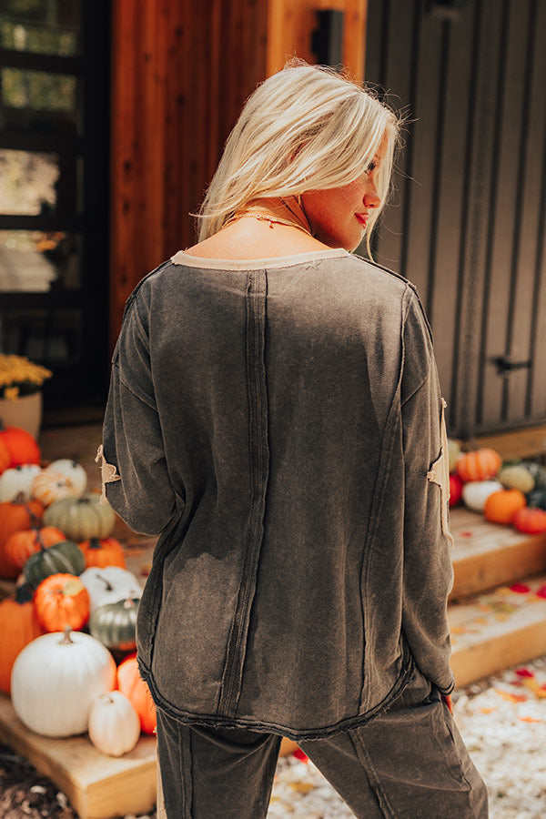 - This super-cute top is giving off effortlessly cool vibes! With its relaxed fit and unfinished seam accents, it's the perfect blend of casual and edgy style. Whether you're lounging at home or running errands, it'll keep you looking stylish. Pair it with your favorite jeans or cozy pants for an easy, laid-back vibe.