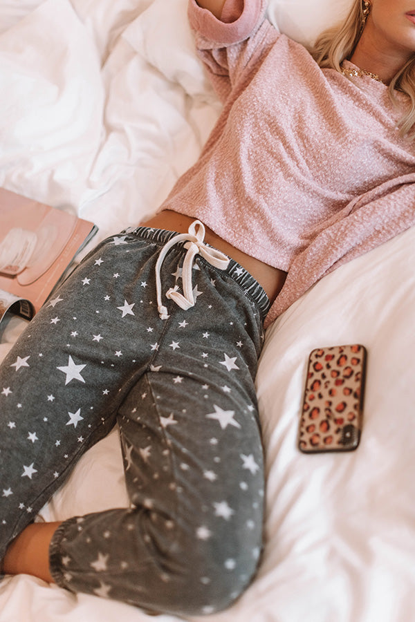 These star printed joggers are comfortable chic! With an elastic drawstring waistline & banded hems, you'll never want to take them off!