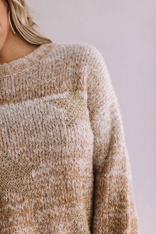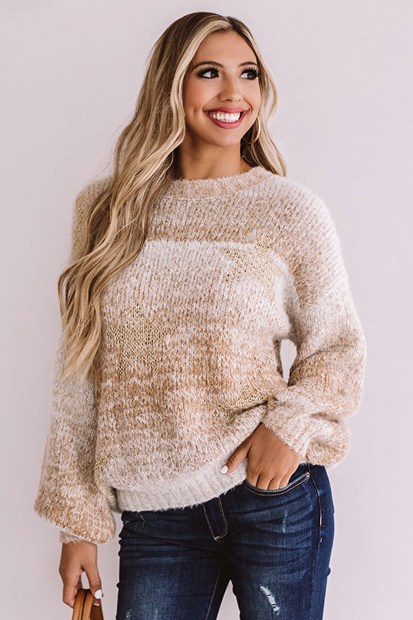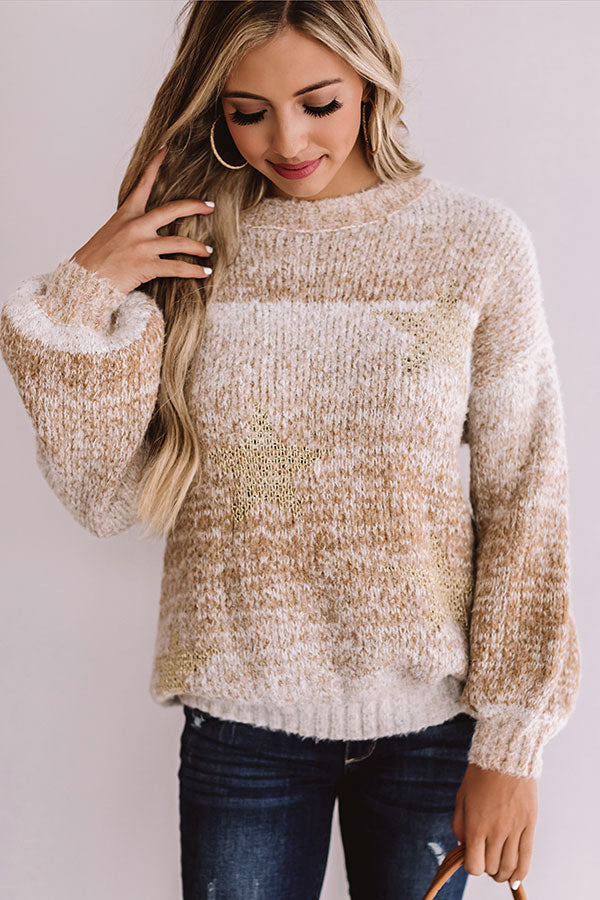 You will be the "star of the show" when you wear this neutral hued sweater featuring a stretch knit texture, a high rounded neckline, a loose bodice with a ribbed hemline, and long bishop sleeves with fitted cuffs! This soft cold weather piece can be paired with some distressed skinnies, a white tote, and over-the-knee boots, but it can also be styled with some white flares, "The Seraphina Faux Leather Wedge in Brown," and "The Aurora Hat in Camel" for an OOTD that offers the perfect warmth and coverage for the crisp fall days ahead! Measurements