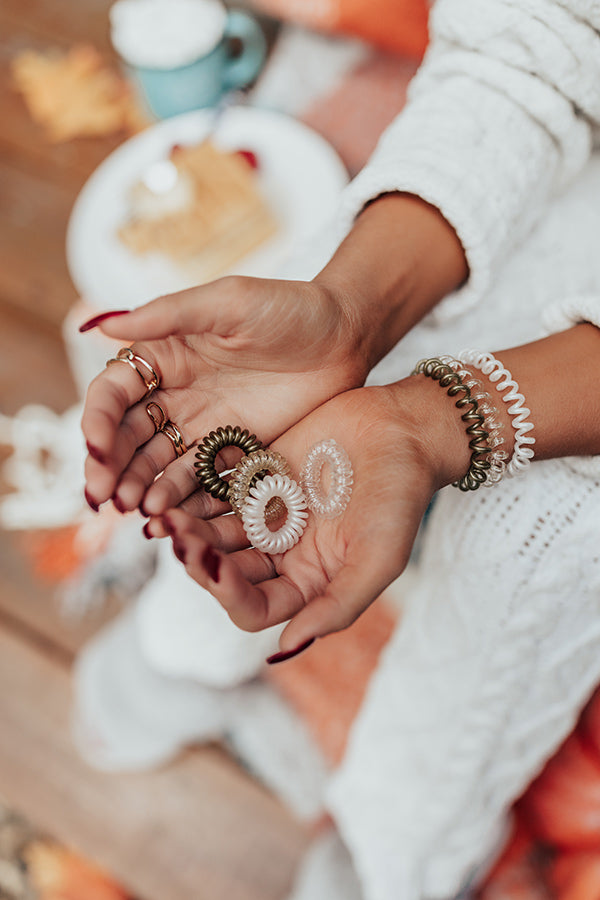 These chic and simple blonde stretchy telephone cord style hair coils are sure to add a pop to any outfit!
