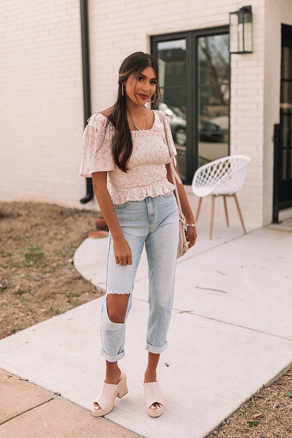Starlet Style Smocked Top In Latte