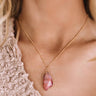 You will hit a glam slam when you accessorize with the statement "Starlight Necklace" featuring an adjustable dainty gold chain and a cinnamon colored faux stone pendant!